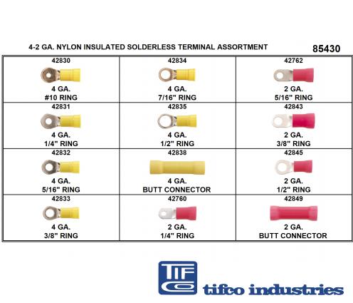 Part#: 85430 - Nylon Wire Terminal Assortment, 4 - 2 Gauge