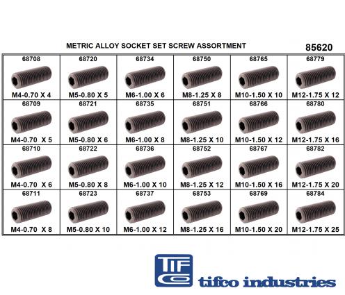 Part#: 85620 - Alloy Socket Set Screw Asst, M4 - M12