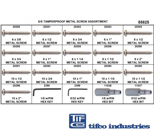 Part#: 85825 - Tamperproof Metal Screw Asst, #6 - #10 S/S
