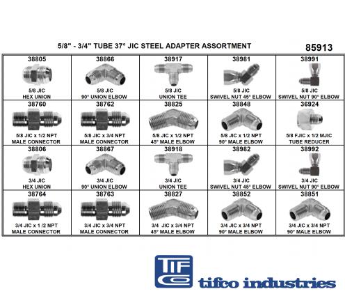 Part#: 85913 - SAE 37 JIC Steel Adapter Asst, 5/8 - 3/4 Tube